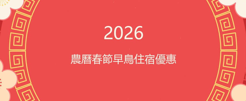 一馬當先,2026農曆春節早鳥住宿優惠。即日起至10/31止,於官網預訂農曆春節住宿(2026/2/13~2/22),憑折扣碼【2026168】立享訂房8%折扣,祝您碼到成功、碼上發財、馬年一路發。